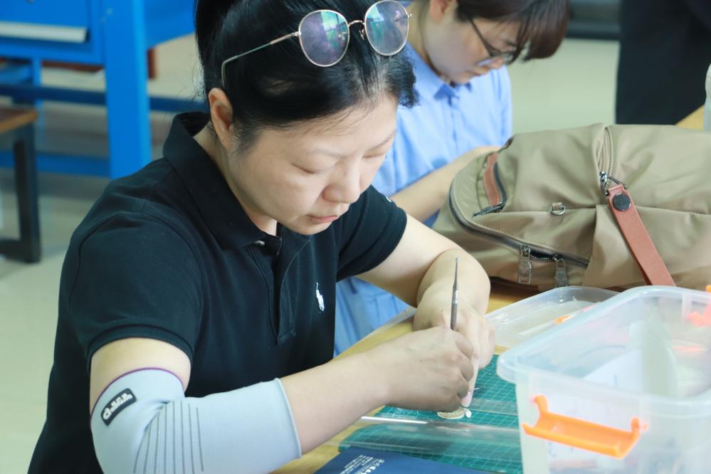2025年9月27日-10月1日,浙江省中小学教师《新型材料纯银粘土制作技法学习及课堂教学培训》培训班在温州理工学院顺利举办。此次课程由温州理工学院设计艺术学院副教授管佳莺老师,副教授何跃如老师,朱娜妮老师共同授课。分别来自浙江省温州市、台州市、东阳市、平阳县、苍南县、龙港市的29位学员在此接受为期5天的学习实践。