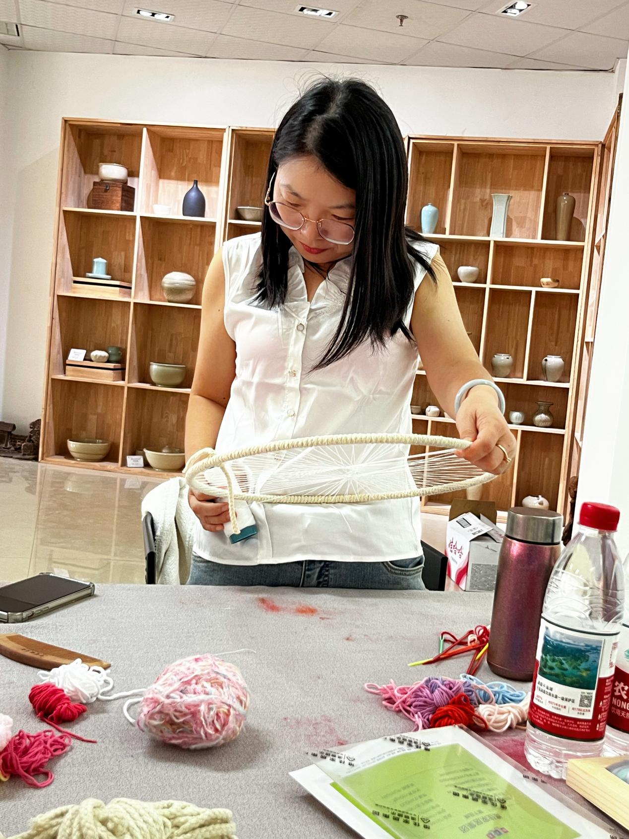 这次学习项目由温州理工学院设计艺术学院的副教授苗颖和副教授叶洲荣共同执教。本次课程旨在倡导“文化创新创造”和“美育体系”,将我国优秀手工编织工艺引入小学美育课程和课外美育实践,提升小学教师的编织技能,拓展他们的艺术素养,提高他们的创新美育教学设计能力。课程旨在明确手工编织工艺如何融入小学教学的内容、过程、意义和价值,结合学校特色开发并实践编织工艺课程,提升教师的课程设计能力,开设拓展课程,以及指导学生社团活动。