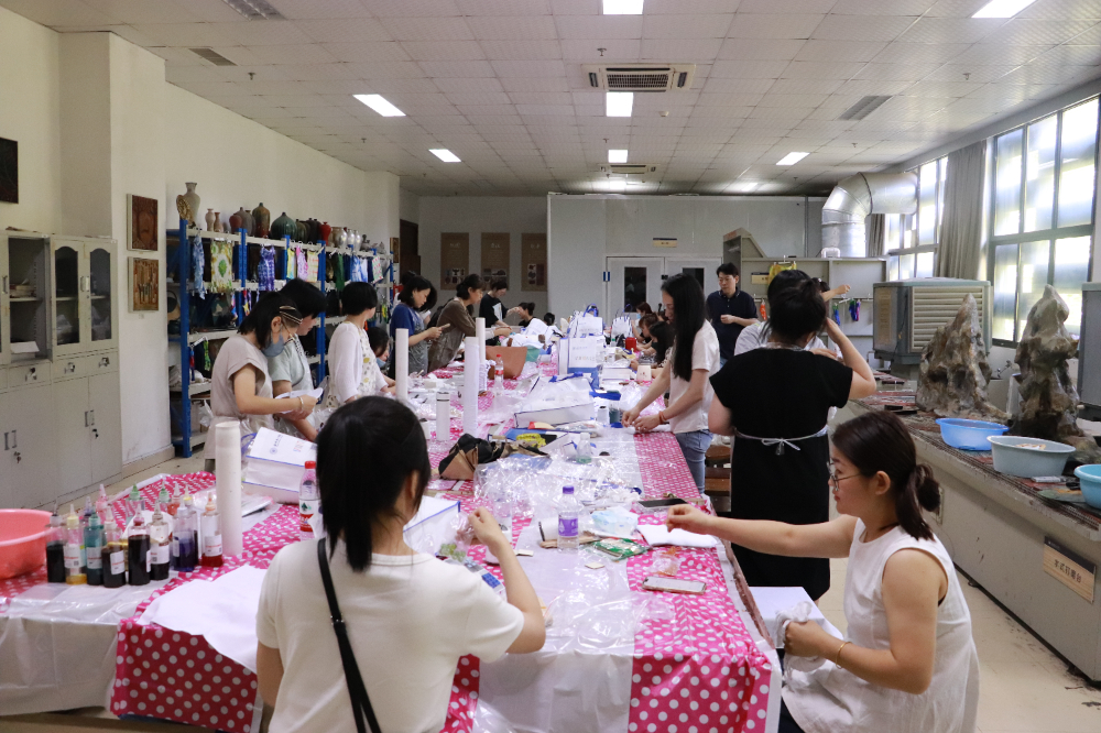 2024年7月8日-7月19日,浙江省中小学教师《手工扎染技能提升与创新饰品研习》培训班在我院顺利举办。分别来自杭州市、温州市、江山市、义乌市、乐清市、杭州市等40位学员在此接受为期十二天的学习实践。
