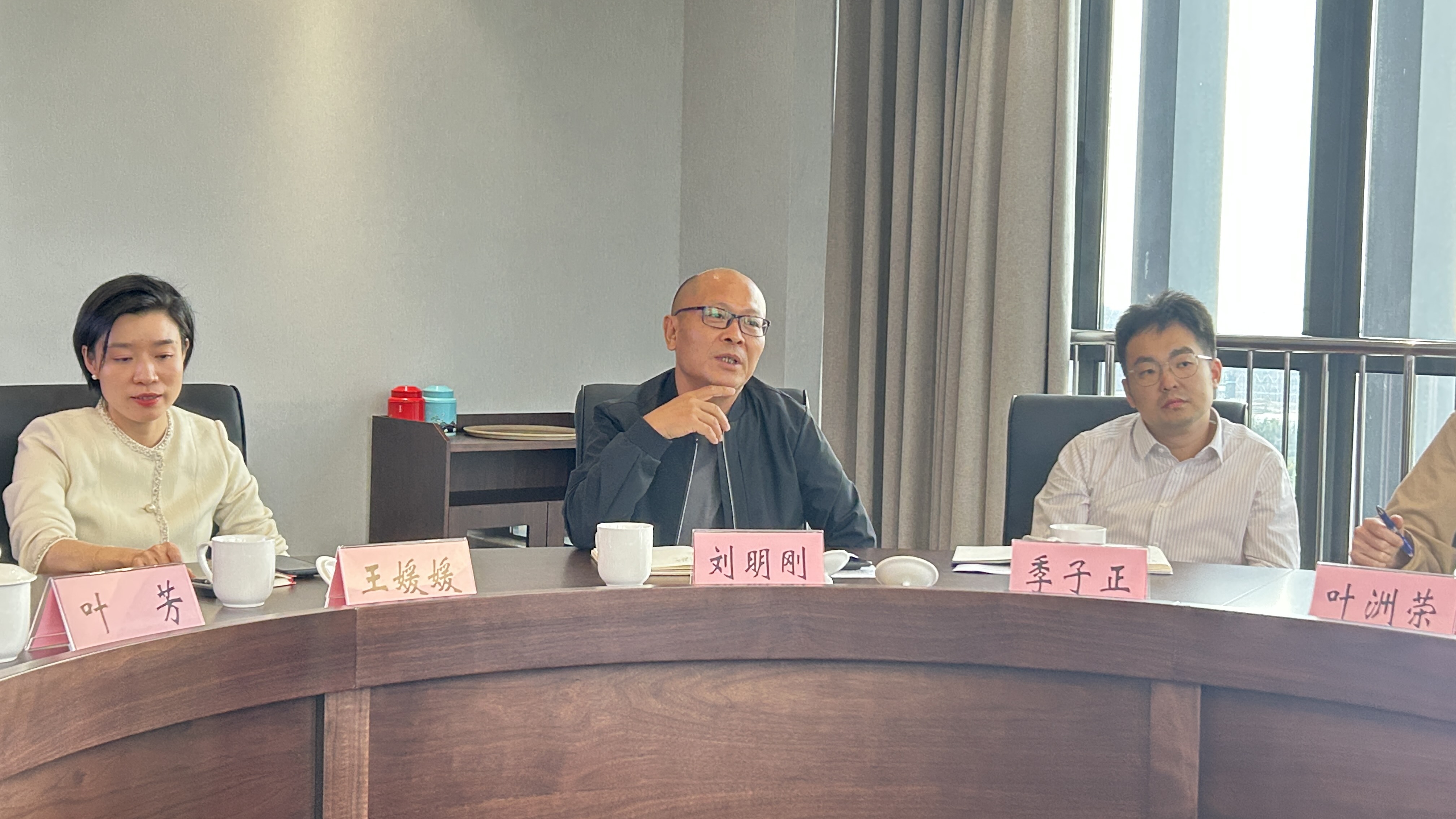 参观结束后,双方移步至行政楼902会议室,围绕“异源共生、智创未来——AI时代的设计革命与教育进化”主题展开座谈。座谈会由设计艺术学院刘明刚院长主持。温州理工学院党委委员、科研处处长王媛媛,设计艺术学院领导班子成员、专业教师代表,以及异类Outliers创始人陈翔宇一行共同参与交流。