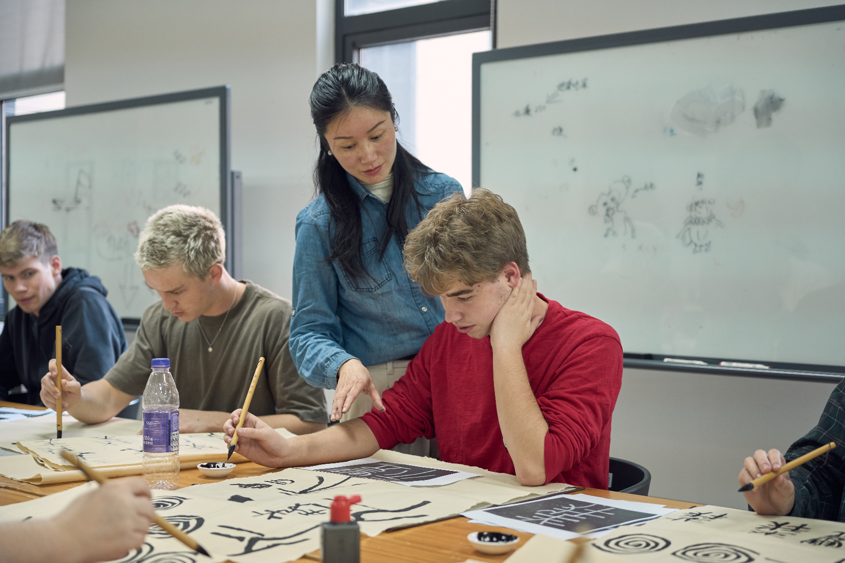 清晨的墨池坊,浸在江南薄雾中,青石板路蜿蜒向前,白墙黛瓦间藏着千年文脉。美国青少年在温州理工学院设计艺术学院师生的陪伴下,走进这一温州文化地标,开启书画之约。中文老师与墨池坊文化向导相互配合,用生动语言为友人们讲述墨池坊的历史渊源;走进书画展示空间,楷书的端庄工整、行书的飘逸流畅、山水画的意境悠远、花鸟画的栩栩如生,让他们驻足惊叹。老师讲解作品创作背景与绘制材质,志愿者适时补充小知识,他们一边认真聆听、凑近观赏,定格跨越国界的文化共鸣。
