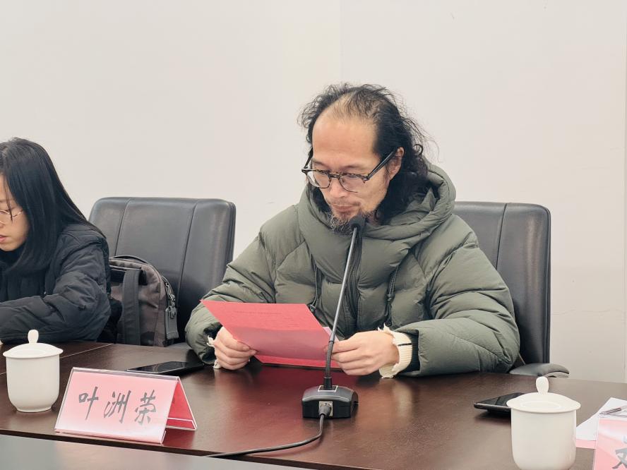 座谈会上,设计艺术学院院长助理叶洲荣老师做开场致辞。他表示,织锦作为中华丝绸文化的璀璨瑰宝,承载着千年匠心与文化基因,学院始终致力于在守正创新中链接传统与现代,此次邀请李加林教授莅临指导,为"非遗+教育+科研"融合发展提供了宝贵契机。