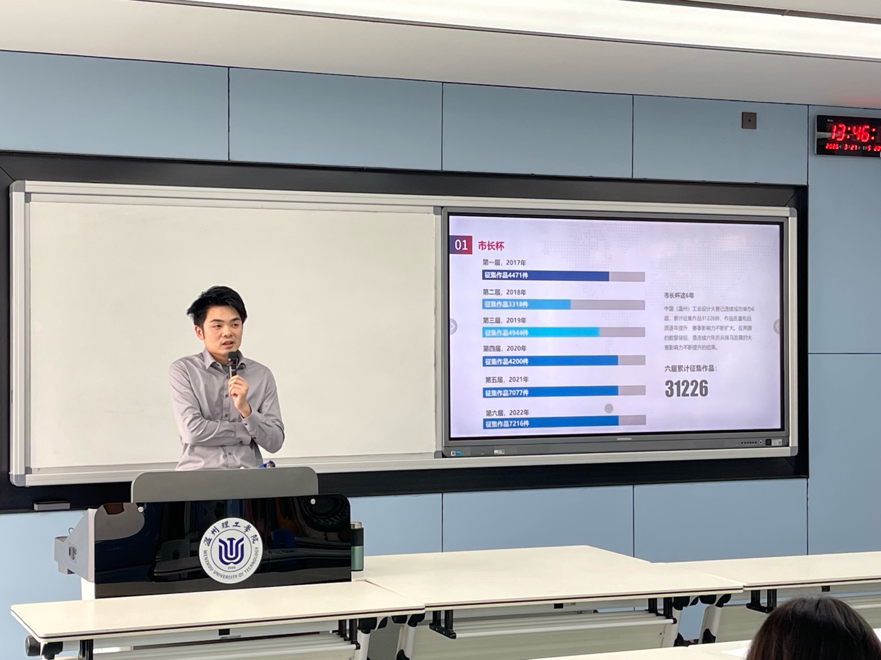 在中国(温州)工业设计大赛的宣讲环节,余总监从赛事背景、赛道设置、评审标准到参赛技巧,进行了全方位的解读。他强调,参赛不仅是检验专业能力的机会,更是拓宽视野、积累作品、建立行业认知的重要途径。