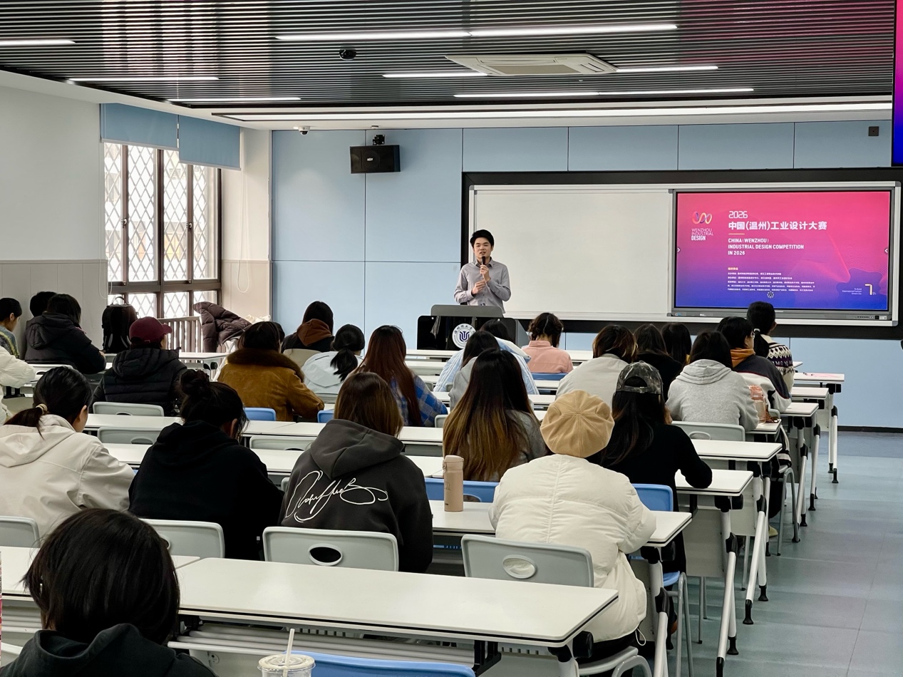 2026年3月27日下午,温州理工学院设计学院产品设计专业专题讲座在实训楼3-4-304顺利举行。本次讲座特邀温州时尚智造设计中心设计总监余明亮先生担任主讲嘉宾,吸引了23、24和25级产品设计专业众多学子到场聆听,现场气氛热烈。